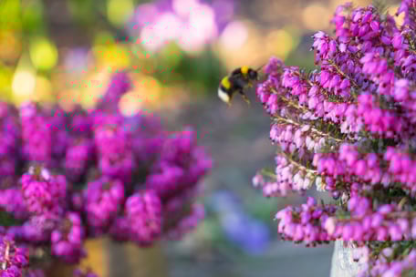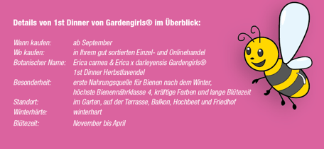Ein reichhaltiges Bienenbuffet ist mit der Irischen Glockenheide (Daboecien) von Gardengirls® angerichtet. Mit ihren glockenförmigen Blüten sind Summer Dinner wunderschöne dekorative Sommer- und